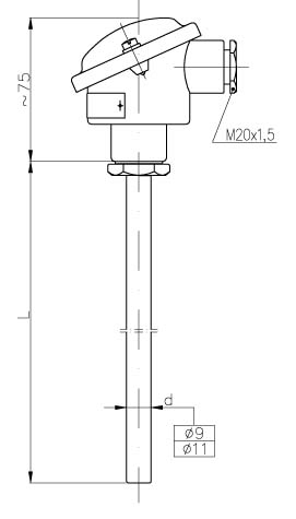Temperature sensors type TS-11 are dedicated to measure temperature of liquids and gases from technological processes in all industrial branches. They are applicable to mount in clamp handle which allowed to set any operating length L.